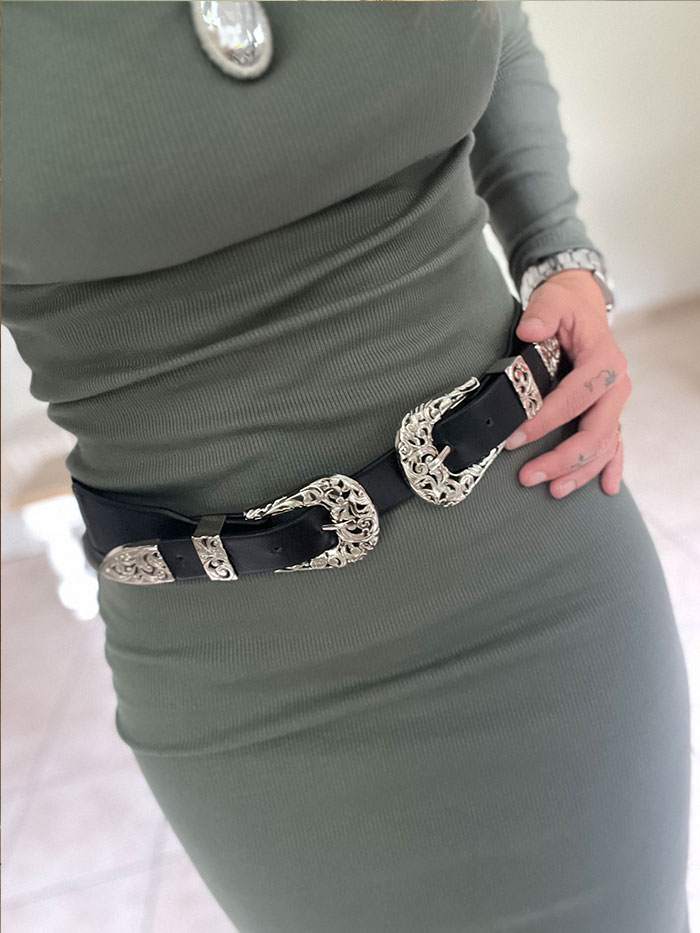 La ceinture Joy est une ceinture à double boucle argentée, de couleur noire, elle est élastique. Elle sera parfaire toutes vos tenues et leur donner un look tendance et chic.