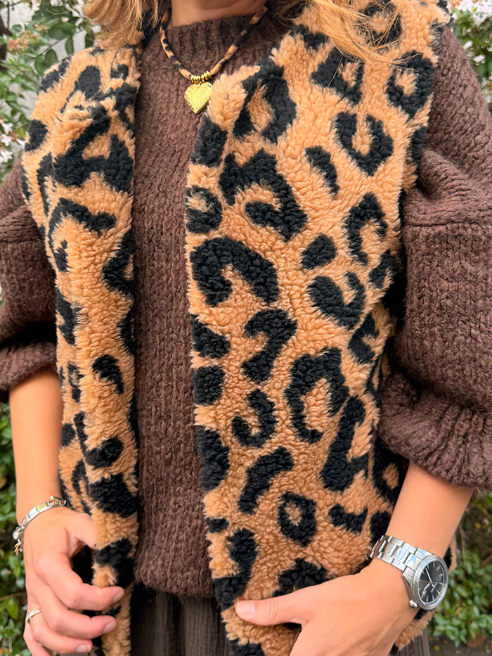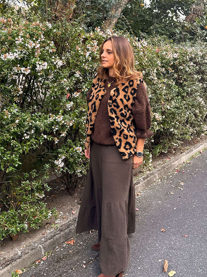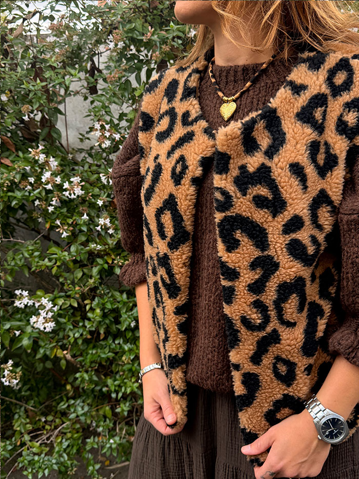 Le Gilet Debo est un gilet sans manche, Il est doté d’une matière chaude et douce.il vous donnera un look tendance et sauvage avec ces motifs léopard. Avec sa coupe droite, il saura s’adapter à toutes les morphologies.