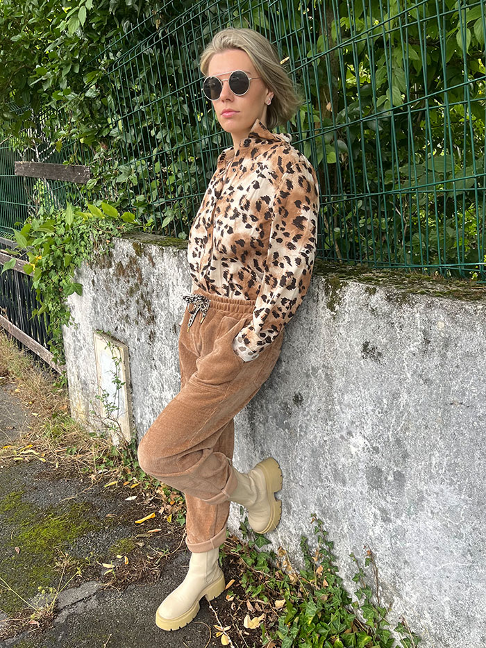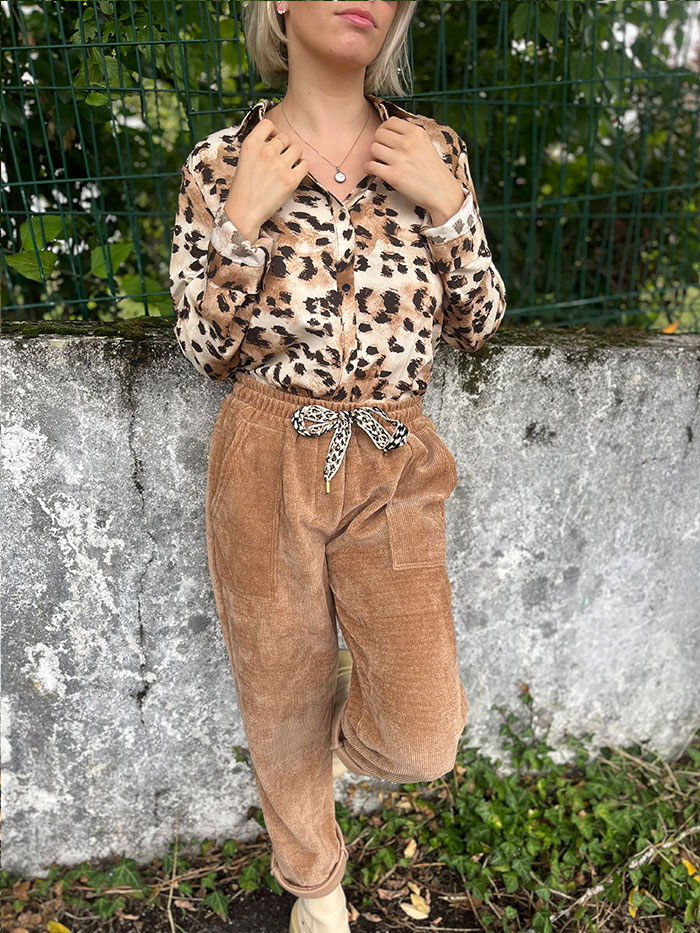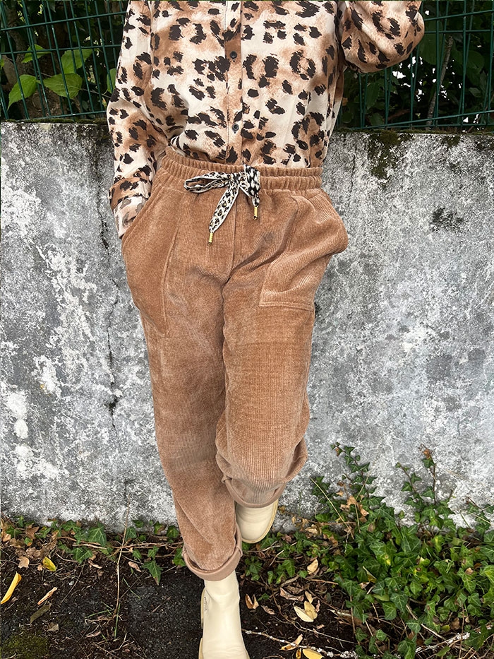 Le Pantalon Diane est un jogging Chic, effet velours côtelé. Elégant et confortable, il sera la pièce incontournable de votre dressing.