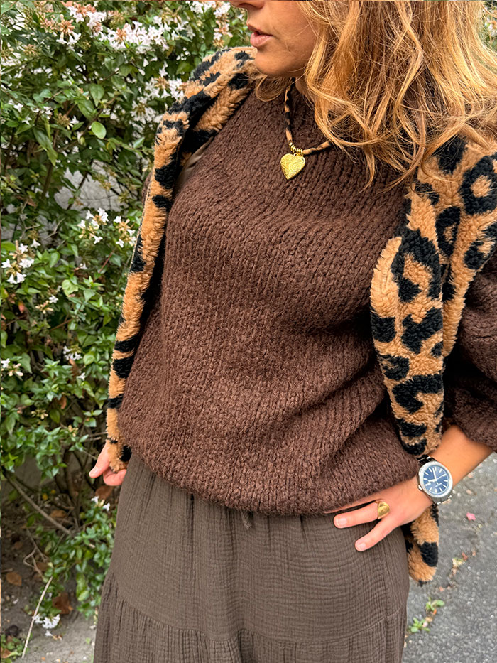 Le Pull Jane est un pull à col rond, il a les manches 3/4, il est doux et réconfortant. Il vous donnera un look cosy et tendance. Agréable à porter, il vous accompagnera la journée ou pour vos soirées.
