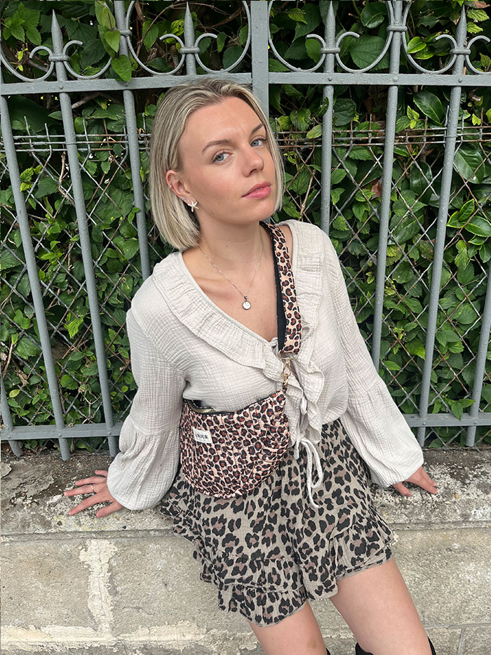 La Sac Banane Amour Léo est un sac à bandoulière réglable, avec sonimprimé léopard, il vous donnera un look tendance. Il s’accordera parfaitement avec toutes vos tenues.
