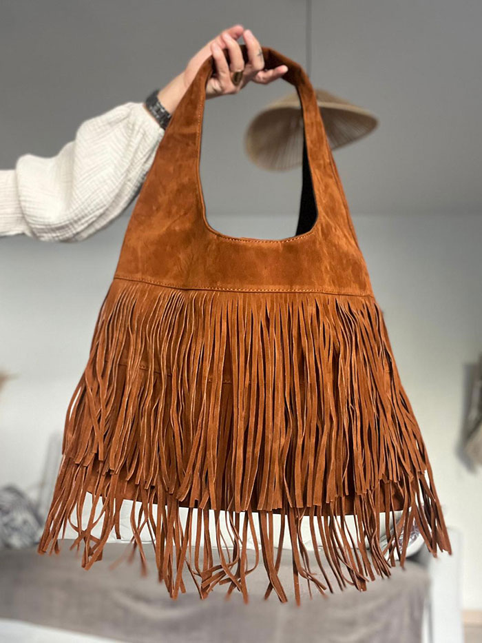 Le Sac Roxanne est un sac à franges, il vous donnera un look affirmé, chic et élégant. Par sa taille, il sera, en plus d’être tendance, pratique pour parfaire une tenue du quotidien ou de soirée.